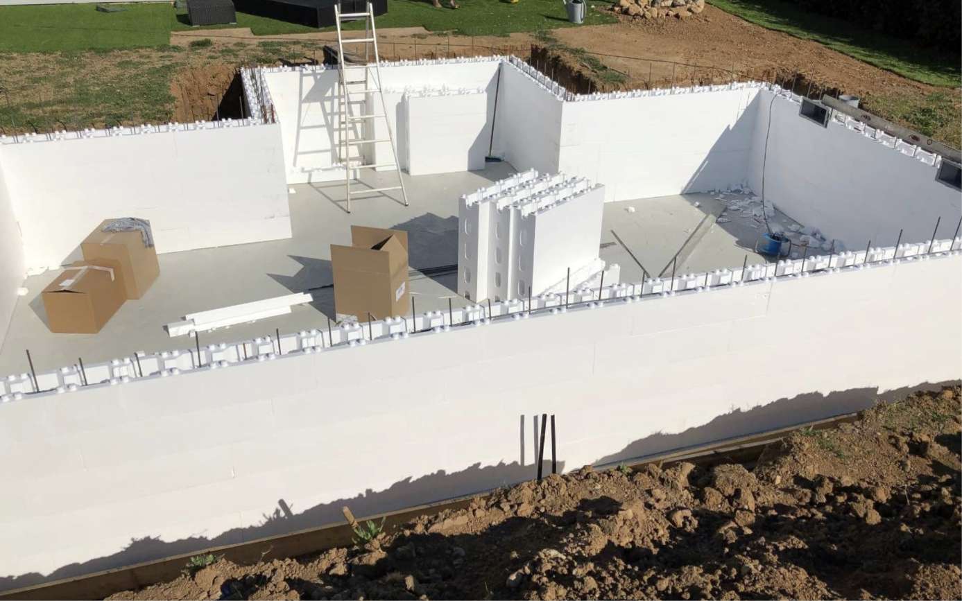 Structure béton armé + polystyrène = résistance équivalente à une construction traditionnelle.